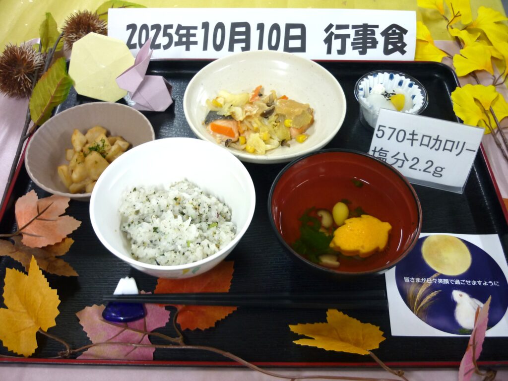 2025年10月の行事食はこちら 秋鮭のちゃんちゃん焼き 里芋の煮物 梅ひじきの混ぜご飯 月見汁 ごま飴団子 ☆☆患者様からのお声を頂きました(^^)☆☆ ★おしかった!満足です。 ★いつもおいしいごはんを作ってくれてありがとう。 ★いつも好きな料理が出てきて嬉しいです。 ★だんごとてもおしかったです。